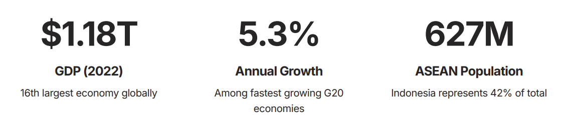 Its GDP reached $1.18 trillion in 2022, making it the 16th largest economy in the world. With annual growth of 5.3%, Indonesia is among the fastest-growing economies in the G20.
